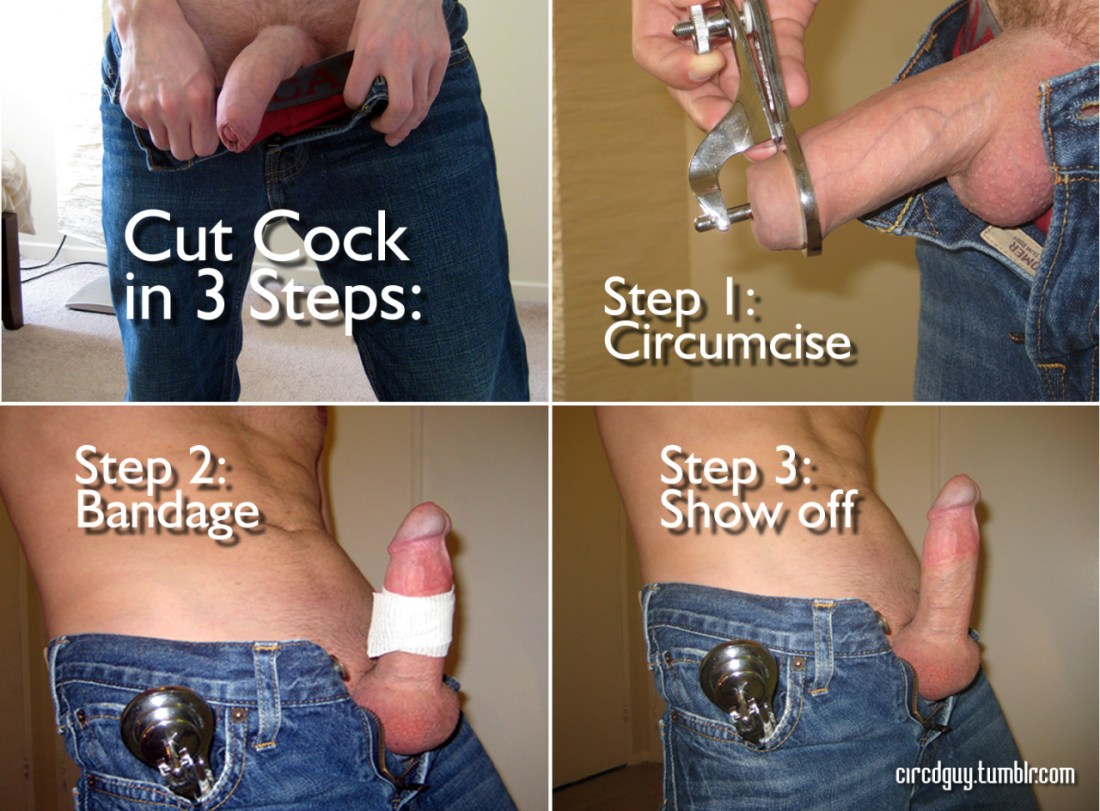 Look at her trying so hard to pull any skin over his glans! But it’s always going to be in vain because he’s been circumcised so will never be able to cover that bare, rough cockhead again. She can’t even cover the rim! Hope she’s telling him: “Look how tightly circumcised you are!”
